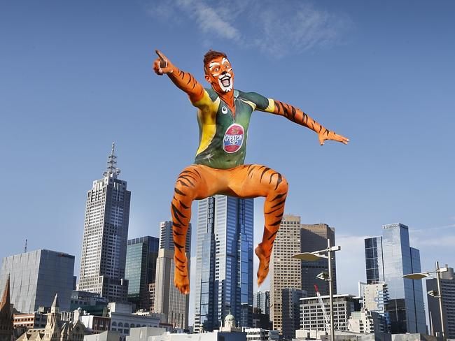 Waratahs rugby union player Drew Mitchell gets bodypainted