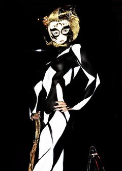 Tonight model Anastasiya Bakss was back again by demand, made up in an Egyptian Babylonian Extreme Cabaret Creature Feature' - ish mummy burlesque like number, with a black and white bodypaint on some of her extremities, and boy did it awake the crowd's 'Egyptian Yummy Mummy' fantasies.