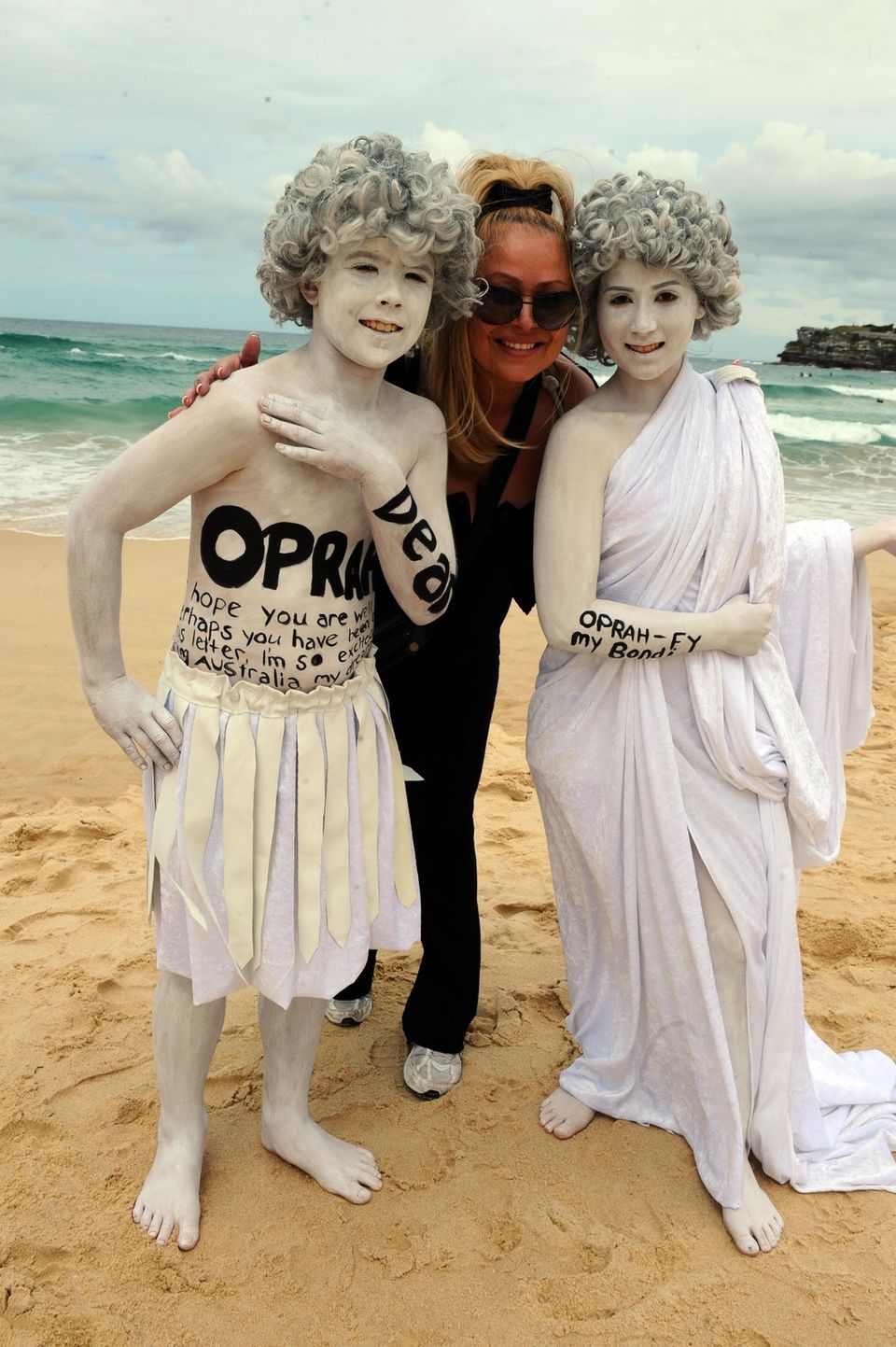 AN Australian artist will ask American TV talk show queen Oprah Winfrey to strip off and have her body painted for charity when she comes Down Under in December.