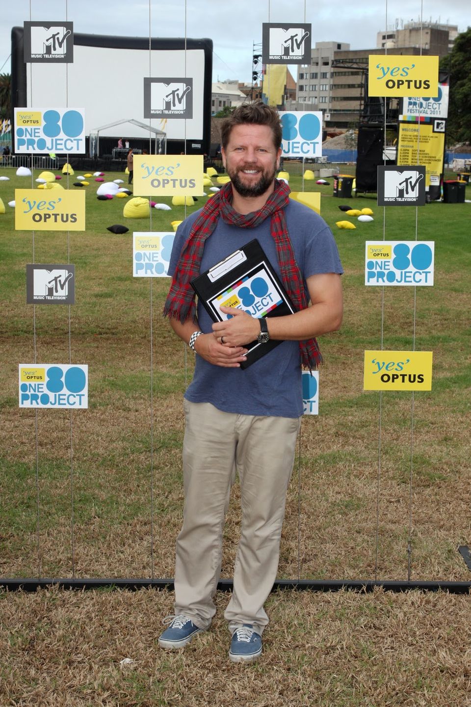The One80Project Festival was held in Sydney's beautiful and large (for the city) Prince Alfred Park.The park was especially green as for the first few hours we were hit with on again, off again rain, with complimentary yellow beanbags and pillows for the public offering minimal relief. The bags and pillows offered colour and atmosphere, and the fans took to them like ducks to water. A visitor was overheard saying "It's Sydney Swampfest", taking a jab at the weather and muddy patches in the grass, but they said it with a smile on their face, and then went on to sink a complimentary cold beer.