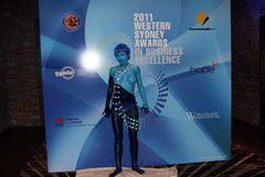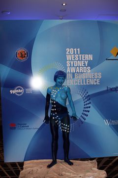 My company, Human Statue BodyArt, was contracted by the Parramatta based Gyrate agency to deliver a human statue model bodypainted in the official colours of this years business awards - light blue, dark blue and white. As they say, a picture tells a thousand words, so be sure to check out the photographs of our creation here.